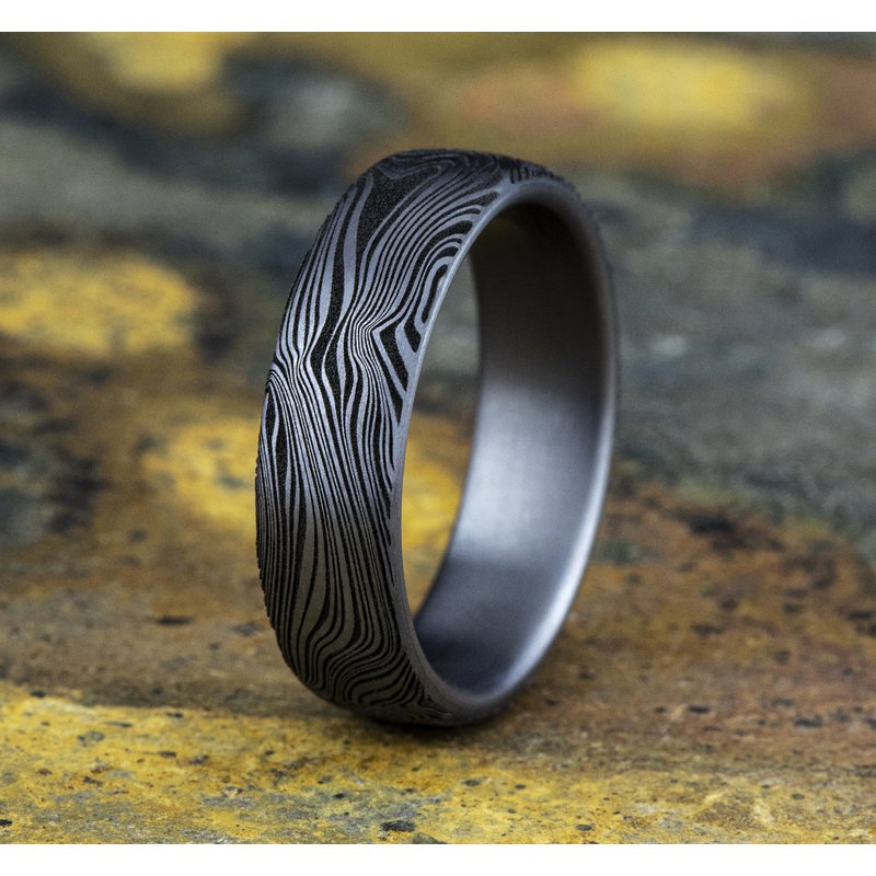 6.5mm, European comfort fit Grey Tantalum Unique Tamascus design