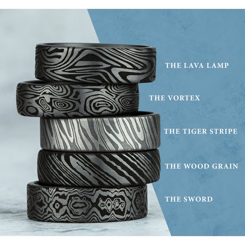 6.5mm, European comfort fit Grey Tantalum Unique Tamascus design