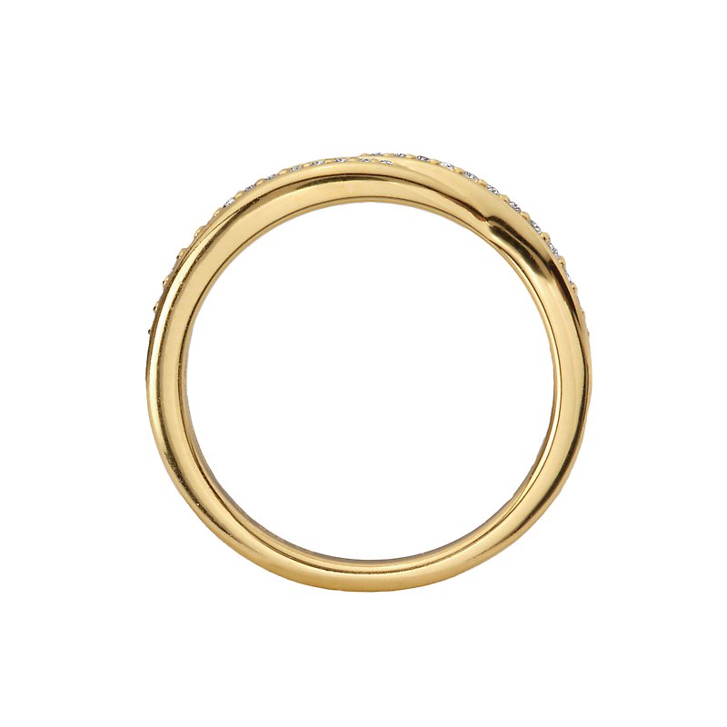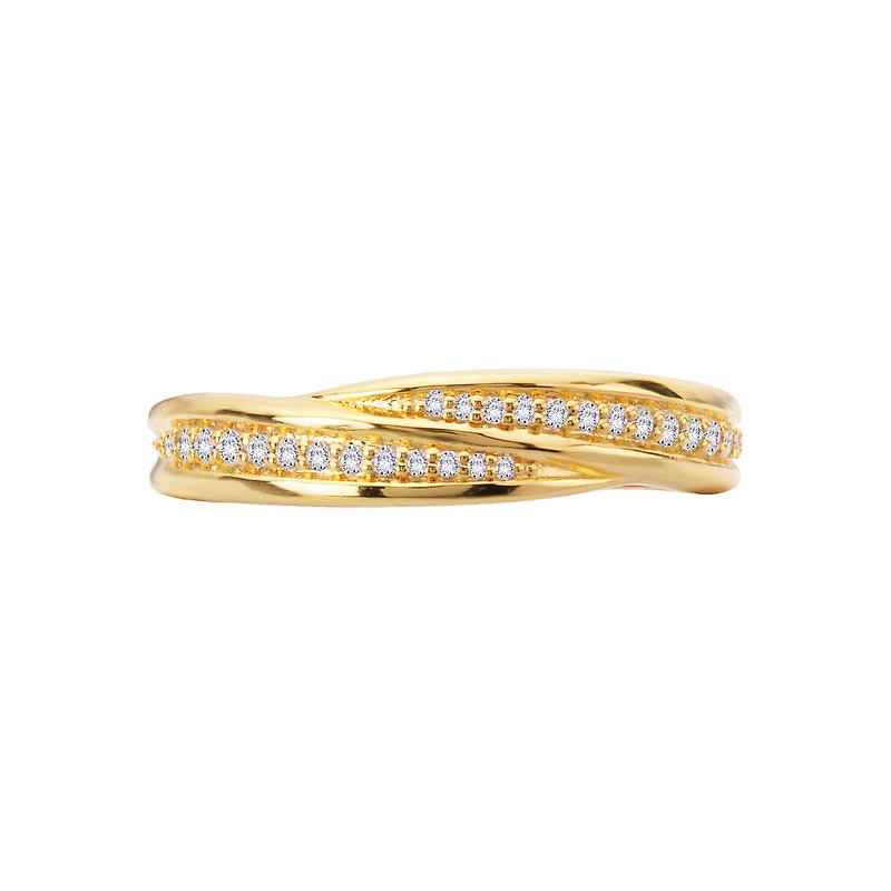 14kt yellow gold swirled accent ring with diamonds. (D 1/7 carat total weight)