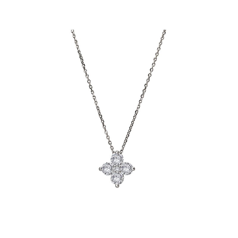 Beautiful floral shaped pendant created with five sparkling round diamonds suspended on an 18 silver cable chain. (D 1 carat total weight)